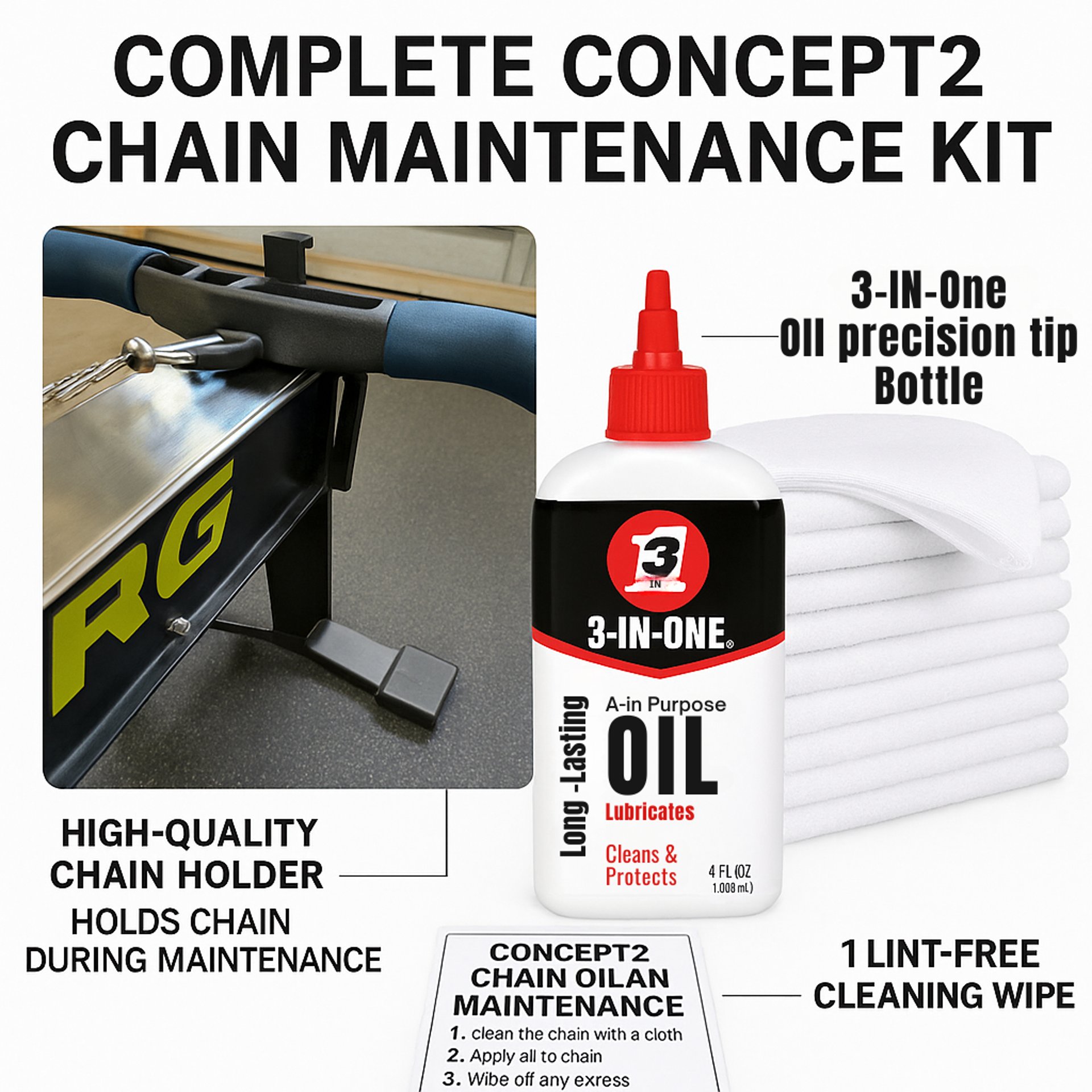 Built from durable, lightweight materials, this bracket is compact, easy to store, and installs in seconds without any tools. Regular chain maintenance is essential to prolonging the life of your rower, and now, it’s easier than ever.